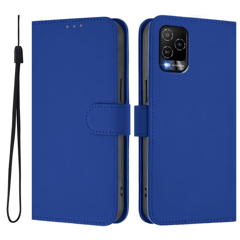 For BLU View 5 Pro Skin Feel Solid Color Leather Phone Case with Lanyard(Dark Blue)