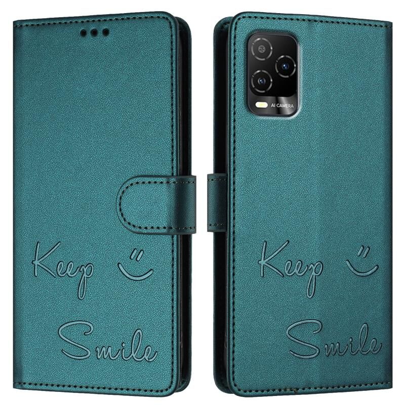 Για BLU View 5 Pro Χαμόγελο ανάγλυφο RFID δερμάτινη θήκη τηλεφώνου (Πράσινο παγώνι)