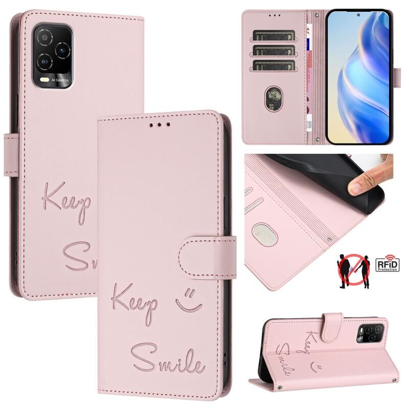 Για BLU View 5 Pro Smile ανάγλυφο RFID δερμάτινη θήκη τηλεφώνου (ροζ)