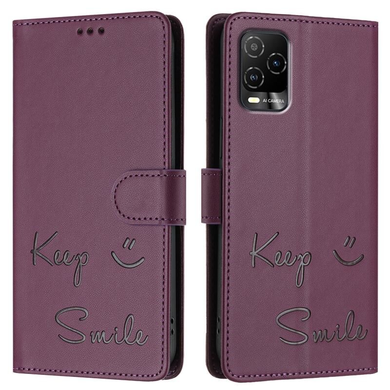 Για BLU View 5 Pro Χαμόγελο ανάγλυφο RFID δερμάτινη θήκη τηλεφώνου (Violet)