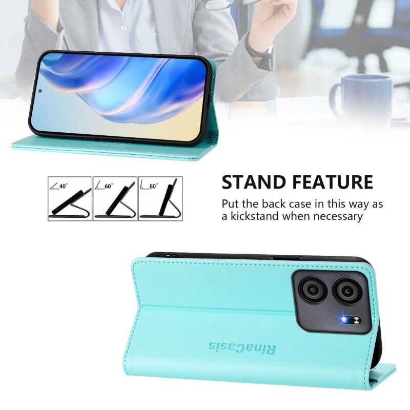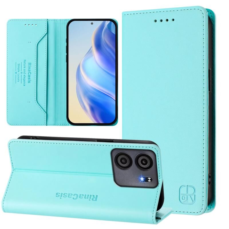 For BLU View 5 RC01 Dual-Folded Magnetic Suction RFID Leather Phone Case(Mint Green)