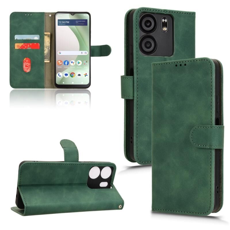Για το BLU View 5 Skin Feel μαγνητική θήκη τηλεφώνου Flip Leather (πράσινο)