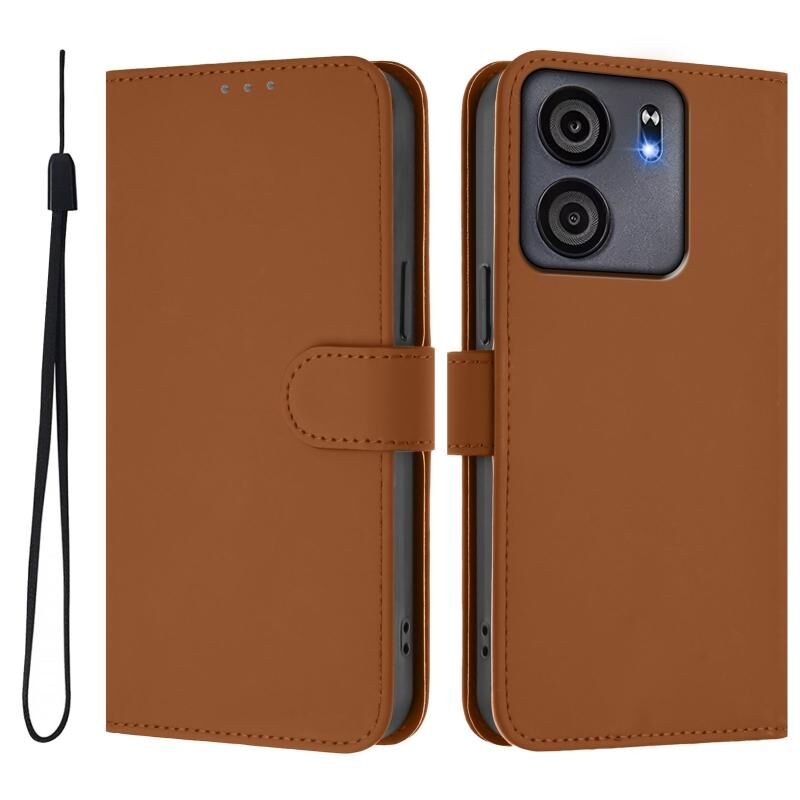 For BLU View 5 Skin Feel Solid Color Leather Phone Case with Lanyard(Brown)