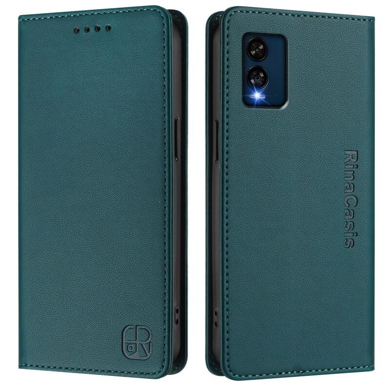 For BLU View Speed 5G B1550VL RC01 Dual-Folded Magnetic Suction RFID Leather Phone Case(Dark Green)