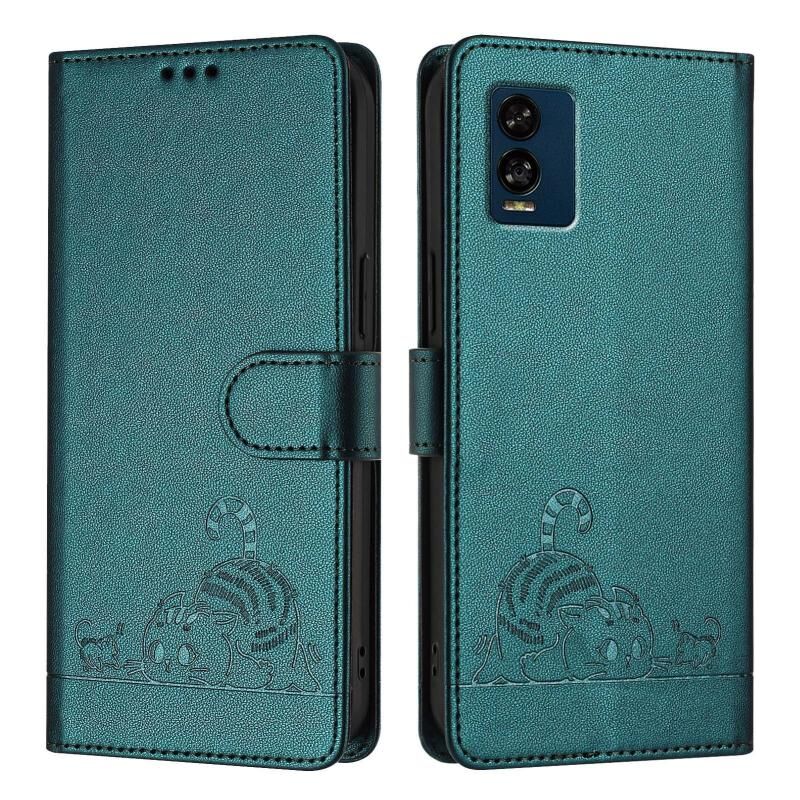 Θήκη τηλεφώνου από δέρμα με ανάγλυφο σχέδιο γάτας και κωδικό RFID για BLU View Speed 5G με κορδόνι (Μέντας Πράσινο)