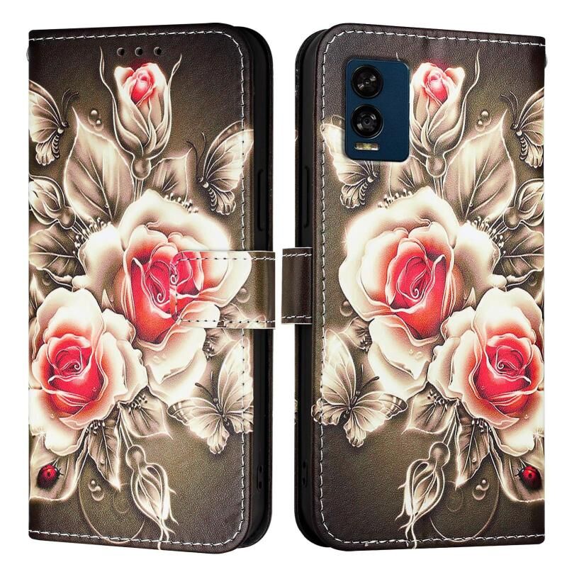 Θήκη τηλεφώνου από δέρμα με απλή ύφανση για BLU View Speed 5G (Μοτίβο πολύχρωμου σχεδίου - Τριαντάφυλλα σε μαύρο φόντο)