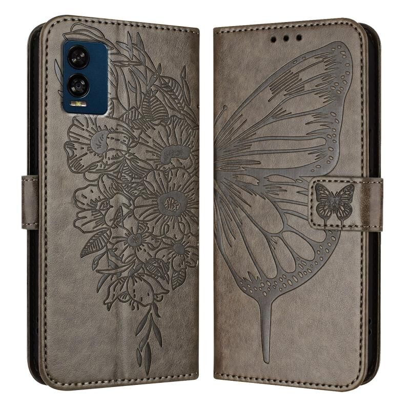 Για BLU View Speed 5G ανάγλυφη πεταλούδα δερμάτινη θήκη τηλεφώνου (γκρι)