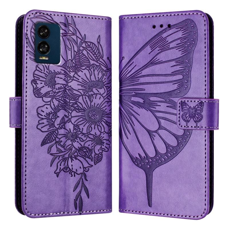 Για BLU View Speed 5G ανάγλυφη πεταλούδα δερμάτινη θήκη τηλεφώνου (ανοιχτό μοβ)