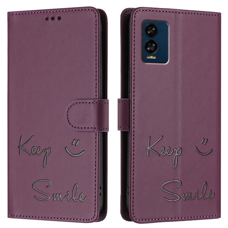Για BLU View Speed 5G Χαμόγελο ανάγλυφο RFID δερμάτινη θήκη τηλεφώνου (Violet)