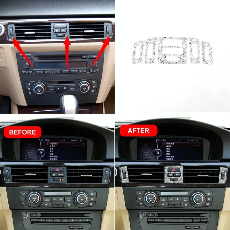 Για BMW Σειρά 3 E90 / E92 / E93 2005-2012 Αυτοκόλλητο Διακοσμητικό Αεραγωγού Αυτοκινήτου Premium με Διαμάντια