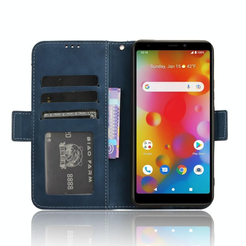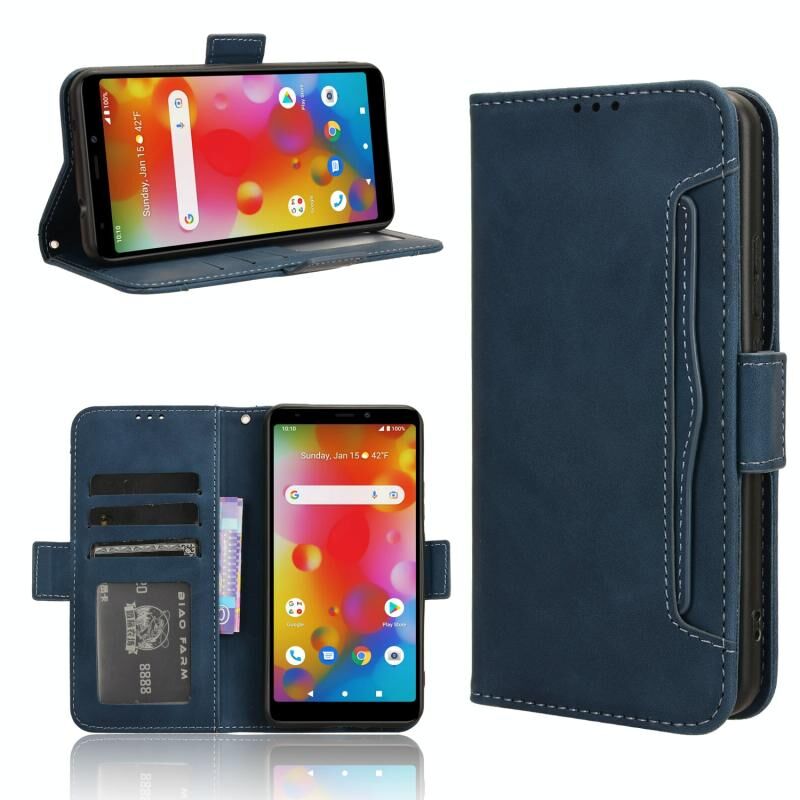 Για Boost Mobile Bounce 4G δέρμα αίσθηση μοσχάρι υφή κάρτα υποδοχές δερμάτινη θήκη τηλεφώνου (μπλε)