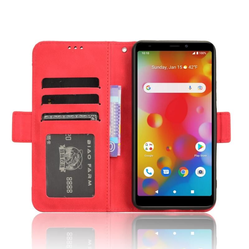 Για Boost Mobile Bounce 4G δέρμα αίσθηση μοσχάρι υφή κάρτα υποδοχές δερμάτινη θήκη τηλεφώνου (κόκκινο)