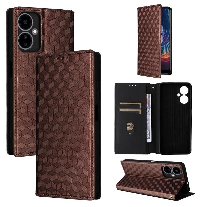 Θήκη τηλεφώνου από δέρμα με υφή Cubic Grid για Boost Mobile Celero 5G 2024 / Celero 3 5G (Μαύρο)