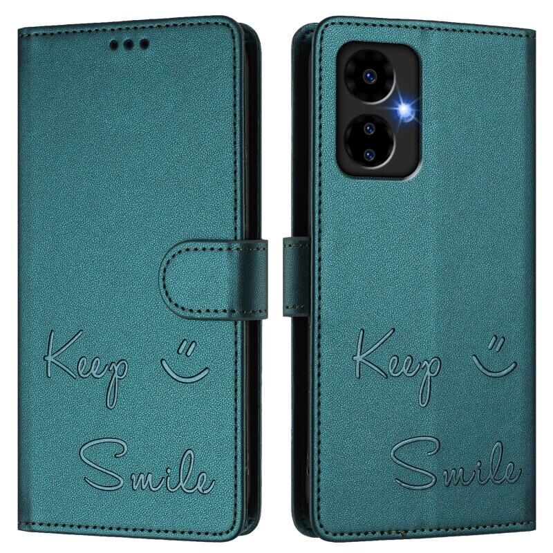 For Boost Mobile Celero 5G 2024 Smile Embossing RFID Leather Phone Case(Peacock Green)
