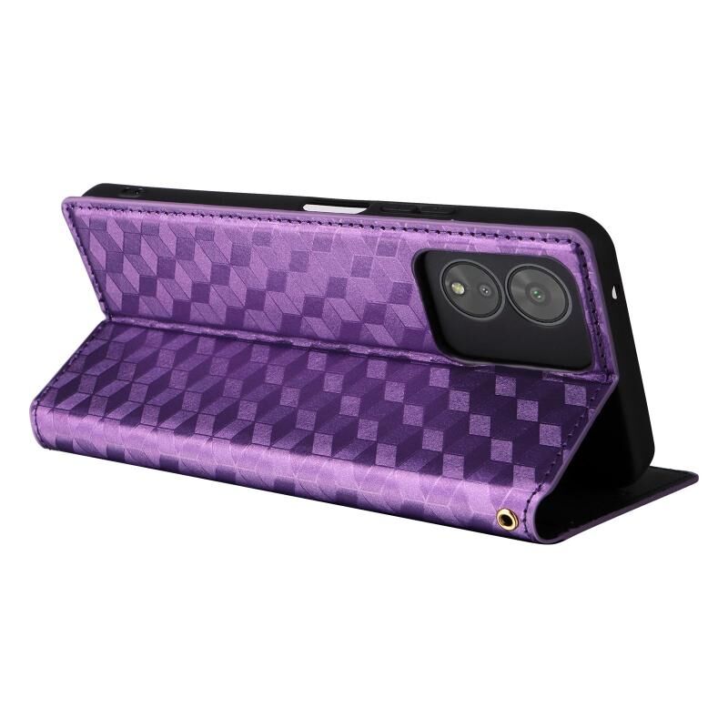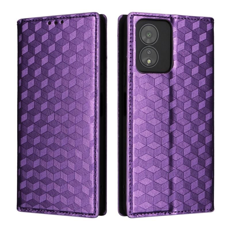 For Boost Mobile Celero 5G SC Cubic Grid Texture Flip Leather Phone Case(Purple)