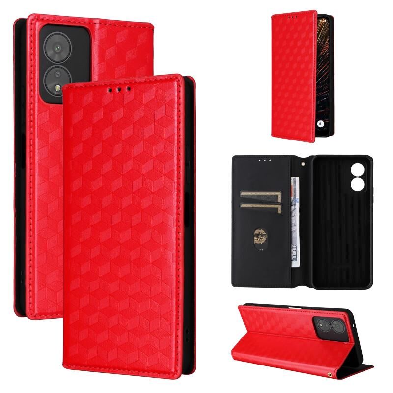 For Boost Mobile Celero 5G SC Cubic Grid Texture Flip Leather Phone Case(Red)