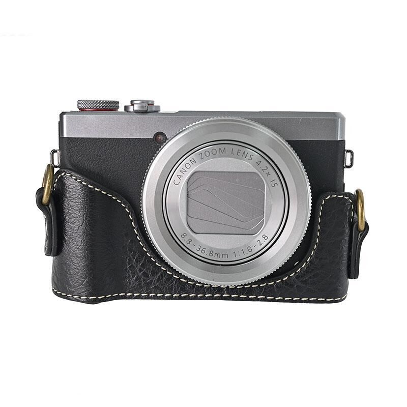 For Canon G7 X Mark III / G7X3 Retro Litchi Texture Leather Full Body Camera Case Bag with Strap(Black)