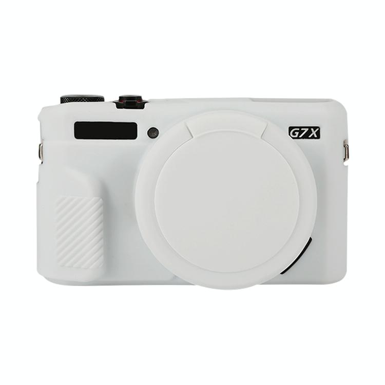 For Canon PowerShot G7 X Mark II / G7X2 Soft Silicone Protective Case with Lens Cover(White)