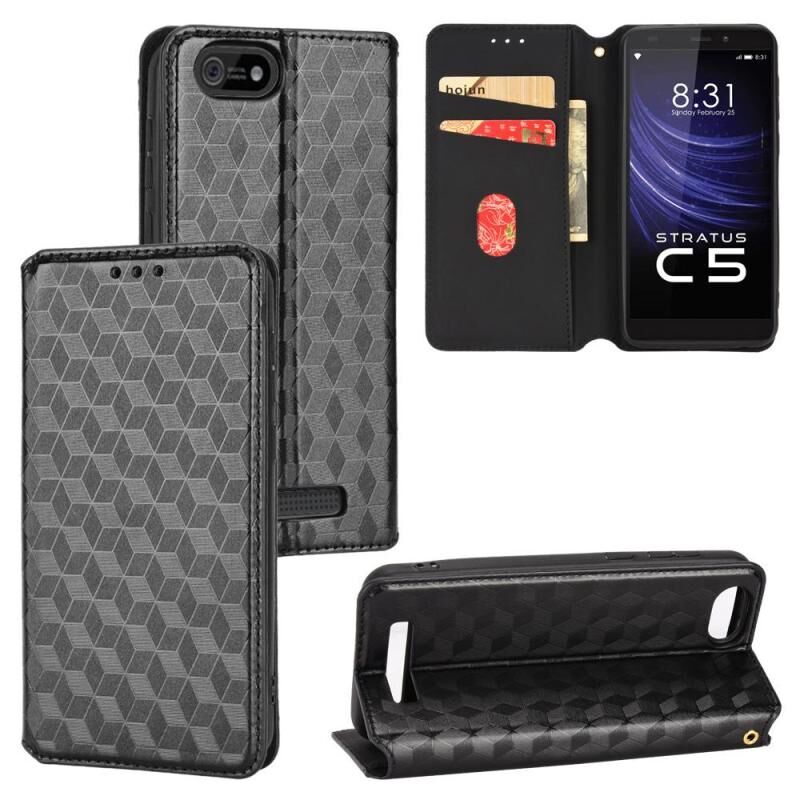 Θήκη τηλεφώνου από δέρμα με υφή Cubic Grid για Cloud Mobile Stratus C5 / Stratus C5 Elite (Μαύρο)