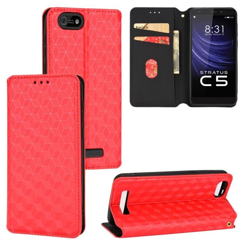 Θήκη τηλεφώνου από δέρμα με υφή Cubic Grid για Cloud Mobile Stratus C5 / Stratus C5 Elite (Μαύρο)