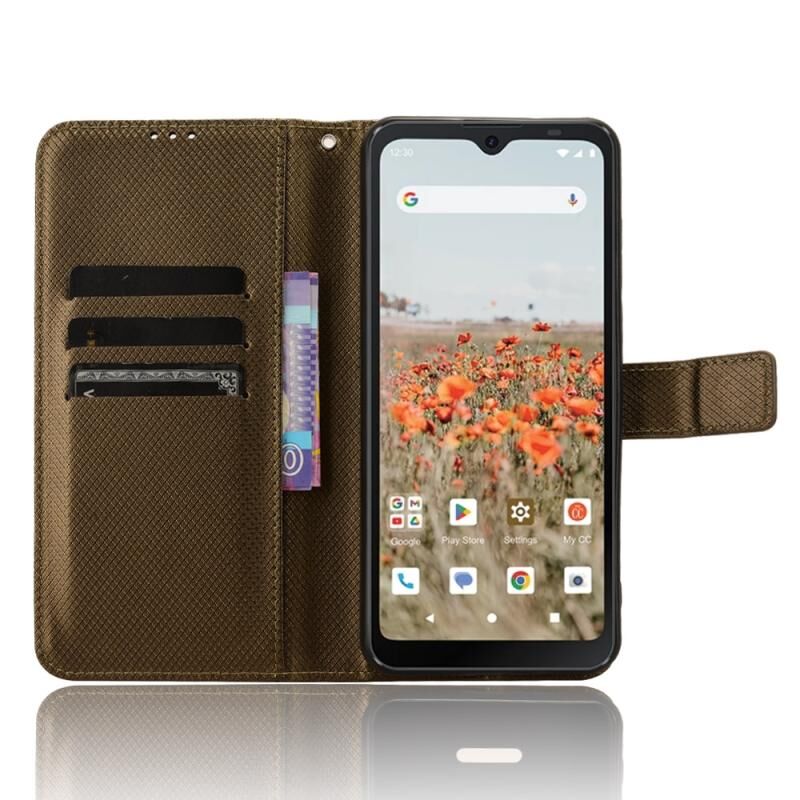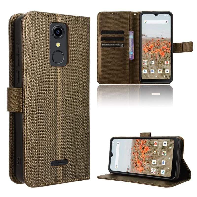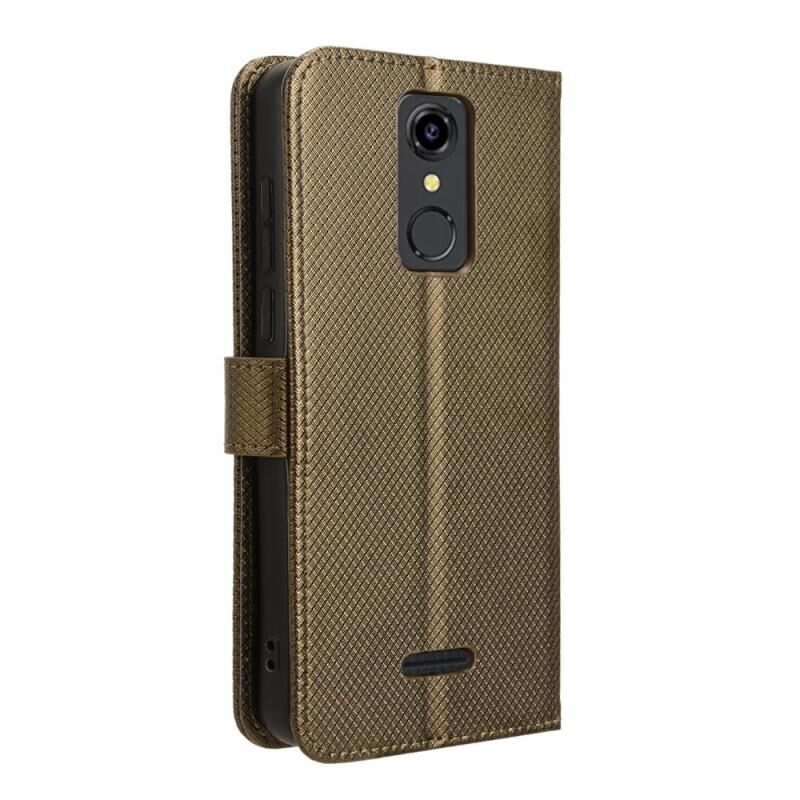 Για Consumer Cellular Iris Connect Diamond Texture Δερμάτινη θήκη τηλεφώνου (καφέ)
