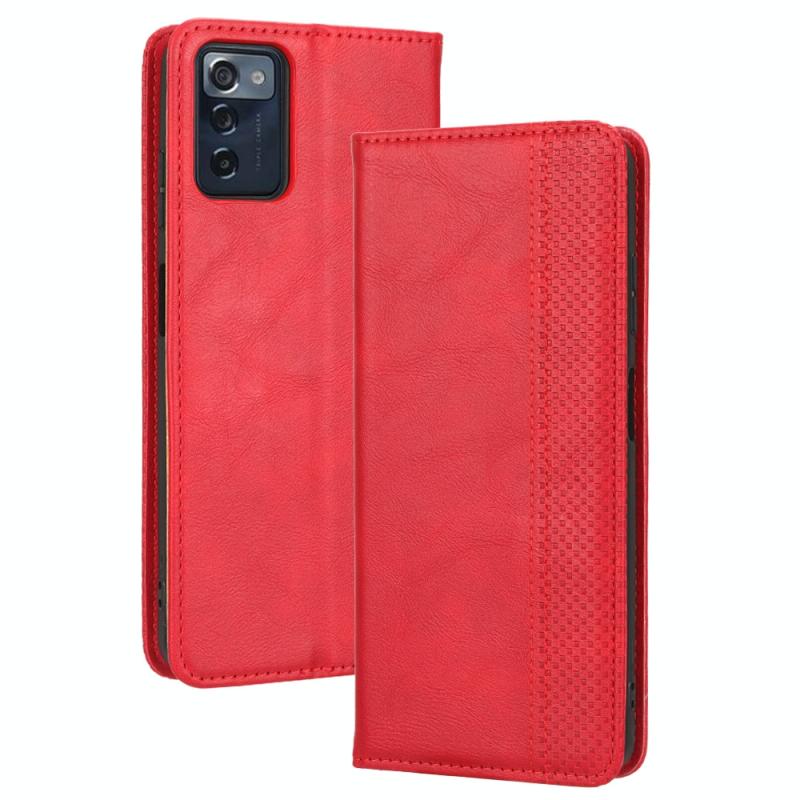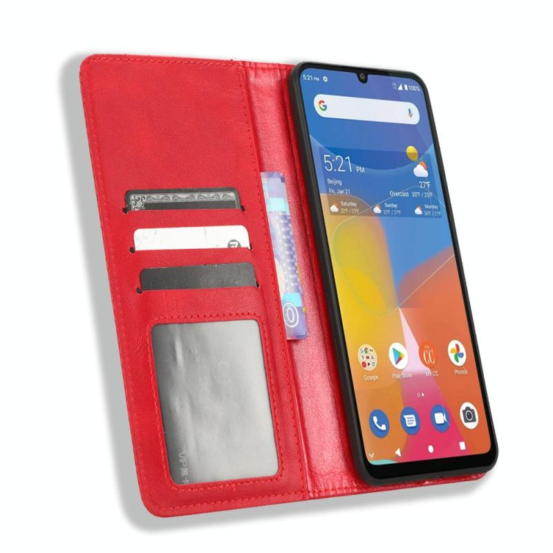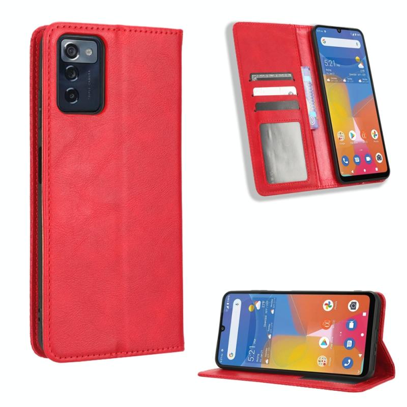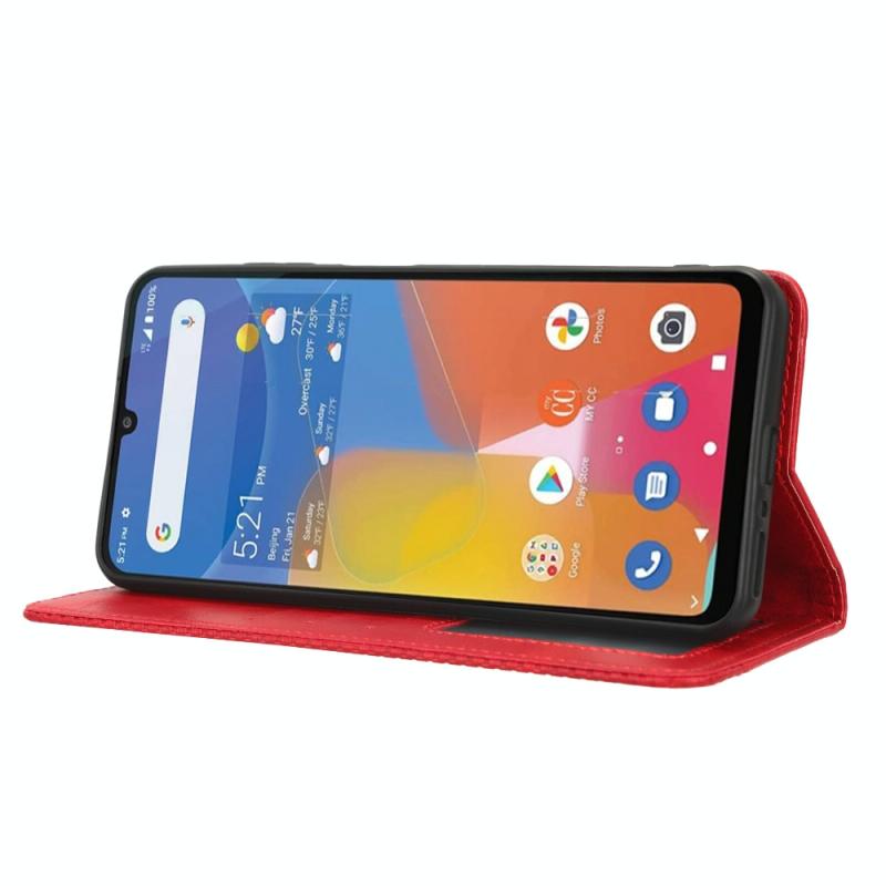 Θήκη κινητού τηλεφώνου Consumer Cellular ZMax 5G με μαγνητικό κούμπωμα, δέρμα με ανάγλυφη υφή retro (Κόκκινο)