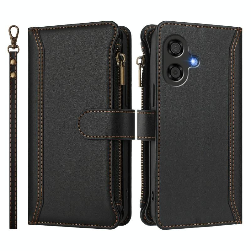 For Coolpad Cool 40i Magnetic Closure 9 Card Slots Zipper Leather Case with Hand Strap(Black)