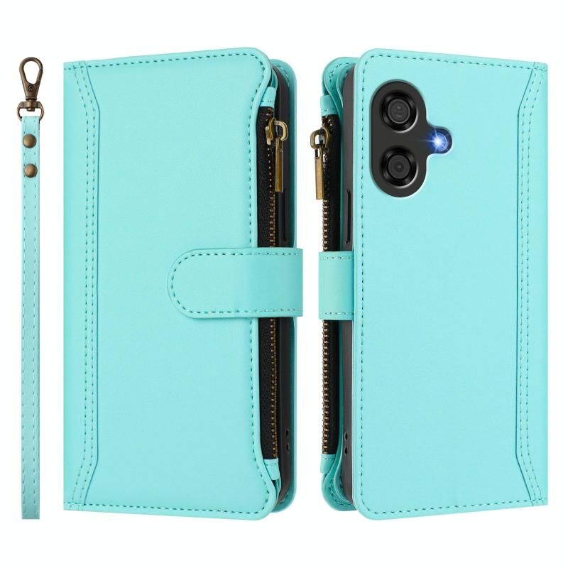 For Coolpad Cool 40i Magnetic Closure 9 Card Slots Zipper Leather Case with Hand Strap(Mint Green)