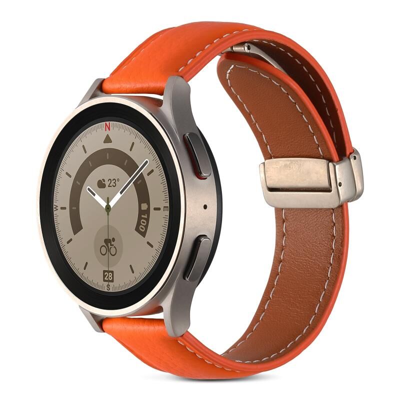 For Coros Pace 2/Coros Apex 42mm Universal Folding Buckle Genuine Leather Watch Band(Orange)