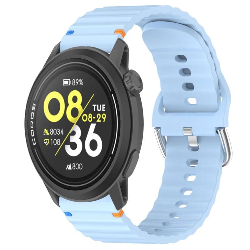 For COROS Pace 3 Wavy Grain Stitched 22mm Silicone Watch Band(Light Blue)