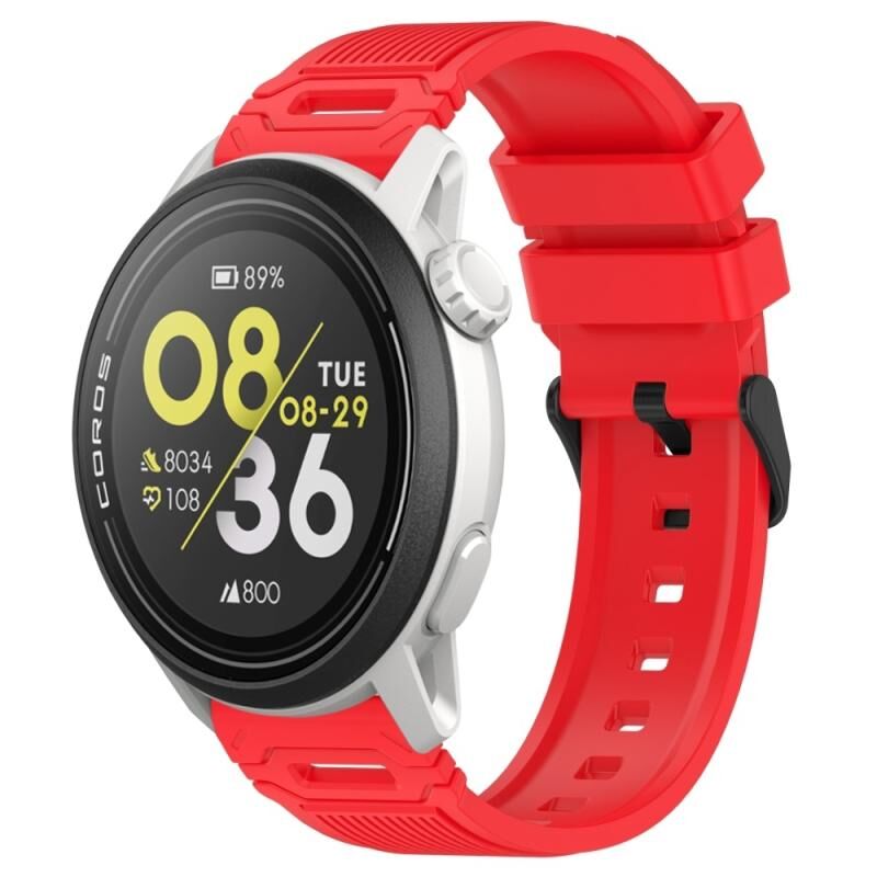 Για το ρολόι COROS ρολόι 22mm κάθετο μοτίβο μαύρο πόρπη σιλικόνης ρολόι μπάντα (κόκκινο)