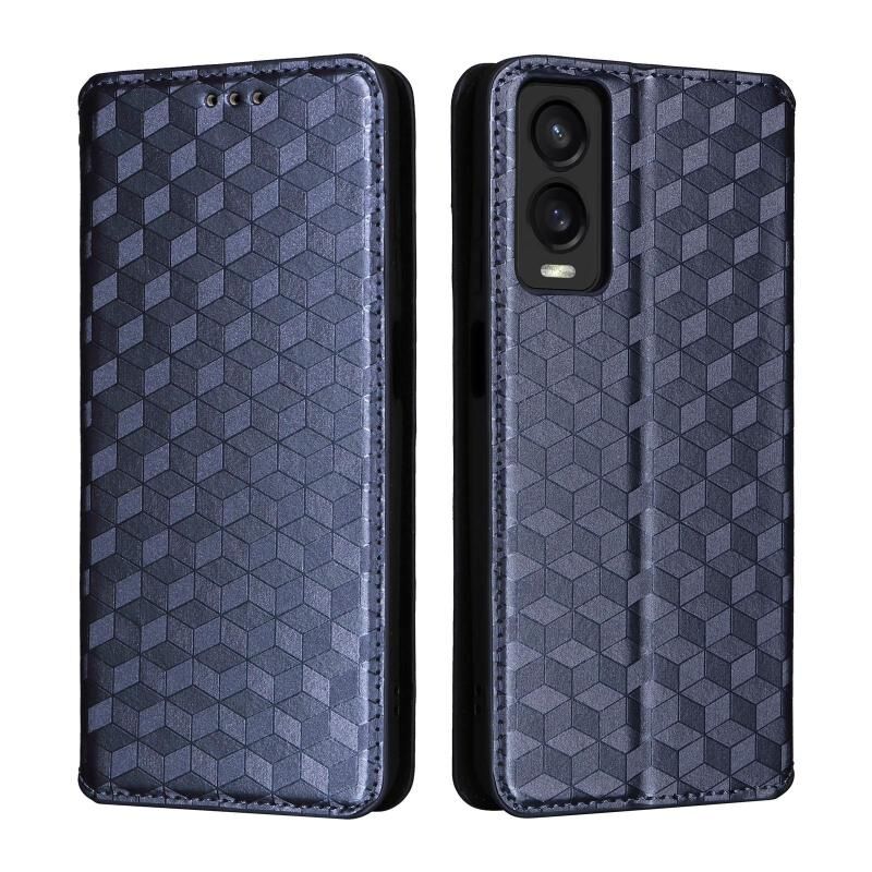 Θήκη τηλεφώνου Cricket Debut S3 Cubic Grid Texture Flip από δέρμα (Μαύρο)