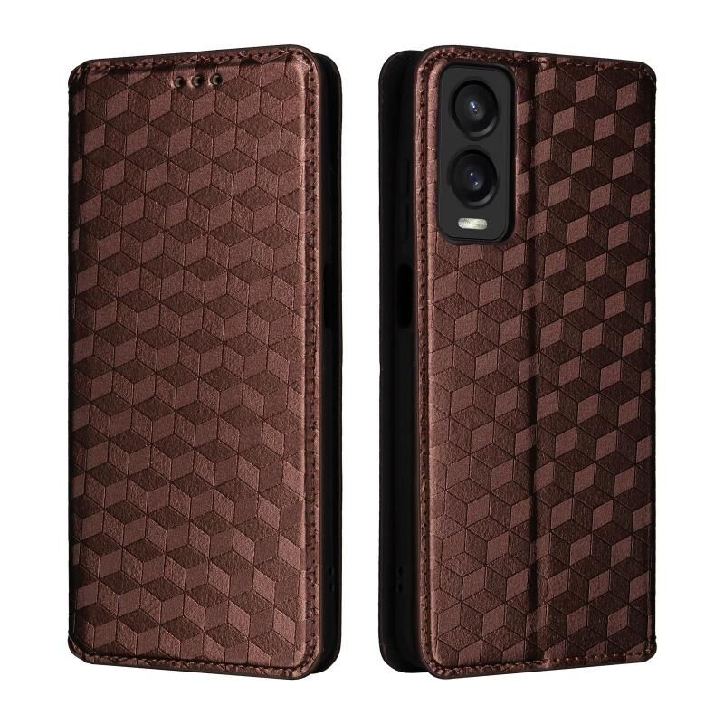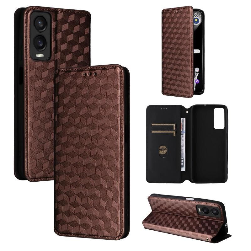Θήκη τηλεφώνου Cricket Debut S3 Cubic Grid Texture Flip από δέρμα (Μαύρο)