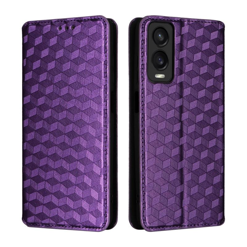 Θήκη τηλεφώνου Cricket Debut S3 Cubic Grid Texture Flip από δέρμα (Μαύρο)