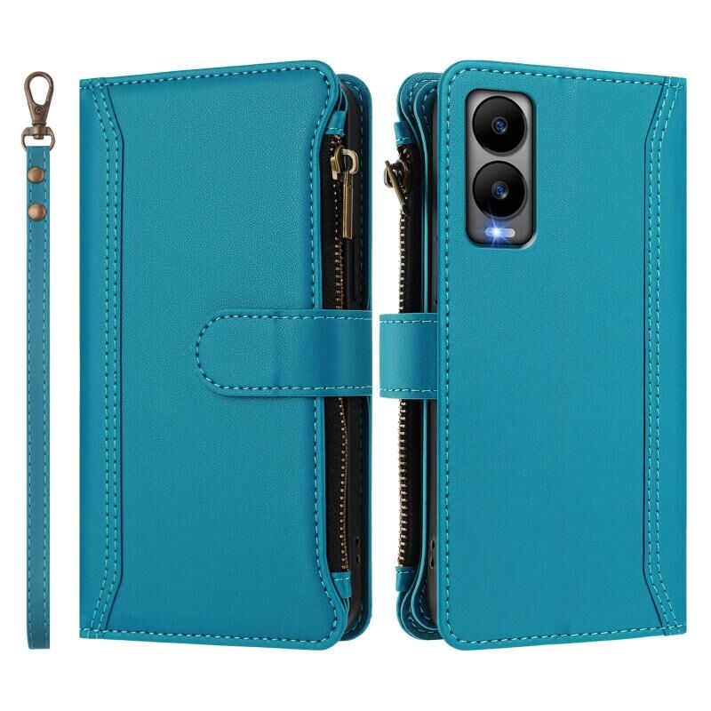For Cricket Debut S3 Magnetic Closure 9 Card Slots Zipper Leather Case with Hand Strap(Turquoise)