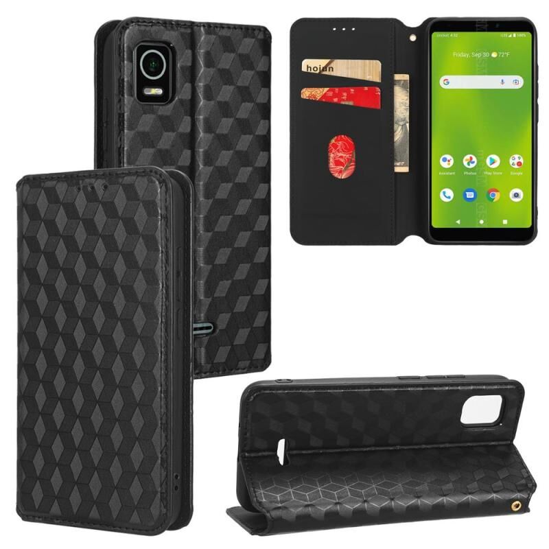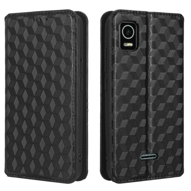 Θήκη τηλεφώνου από δέρμα με υφή κυβικού πλέγματος, αναδιπλούμενη, για Cricket Debut Smart (Μαύρο)