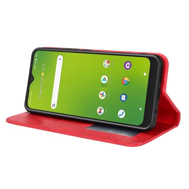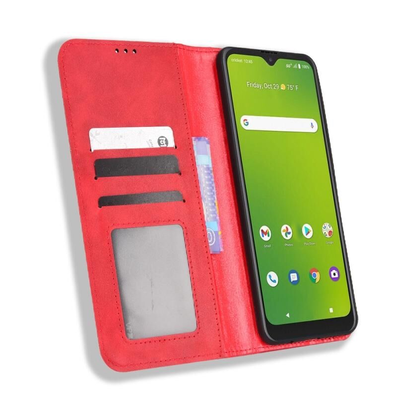 Για Cricket Dream 5G / AT & T Radiant Max 5 Μαγνητική πόρπη ρετρό υφή δερμάτινη θήκη τηλεφώνου (κόκκινο)