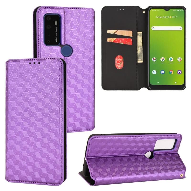 For Cricket Dream 5G Cubic Grid Texture Flip Leather Phone Case(Purple)