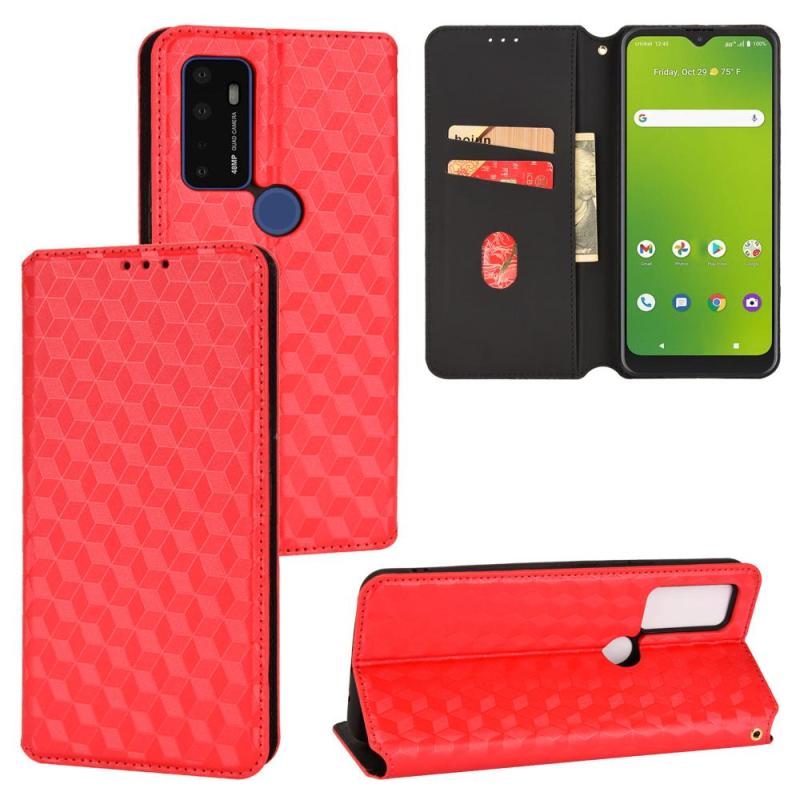For Cricket Dream 5G Cubic Grid Texture Flip Leather Phone Case(Red)