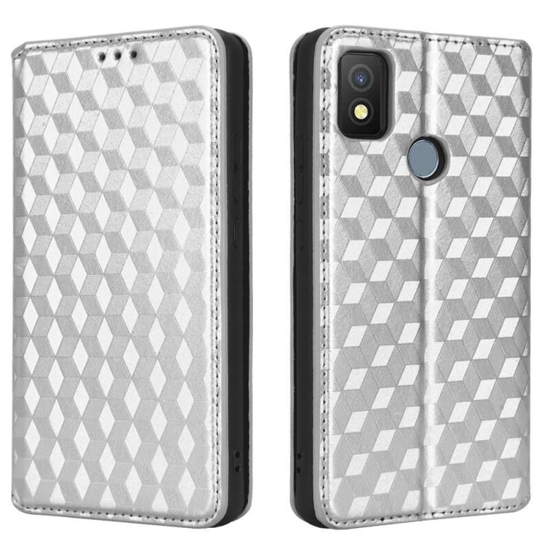 Θήκη τηλεφώνου Cricket Icon 4 Cubic Grid Texture Flip Leather (Μαύρο)