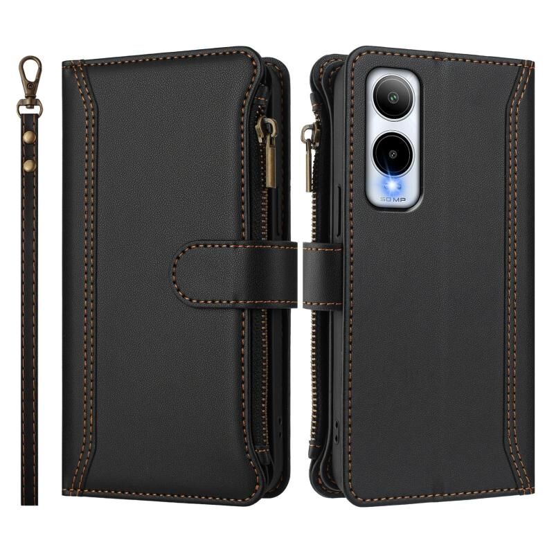 For Cricket Icon 6 Magnetic Closure 9 Card Slots Zipper Leather Case with Hand Strap(Black)