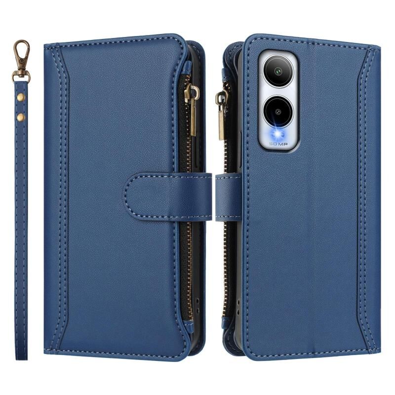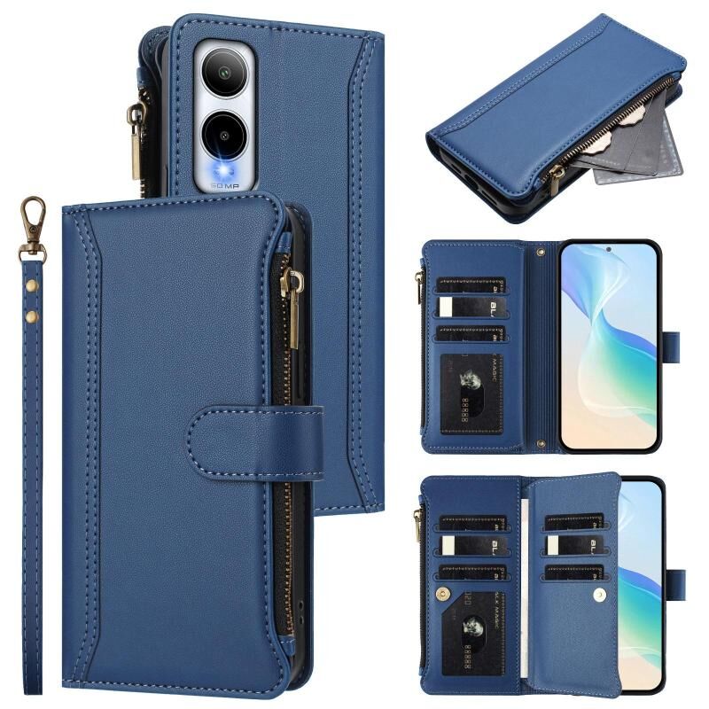 For Cricket Icon 6 Magnetic Closure 9 Card Slots Zipper Leather Case with Hand Strap(Dark Blue)