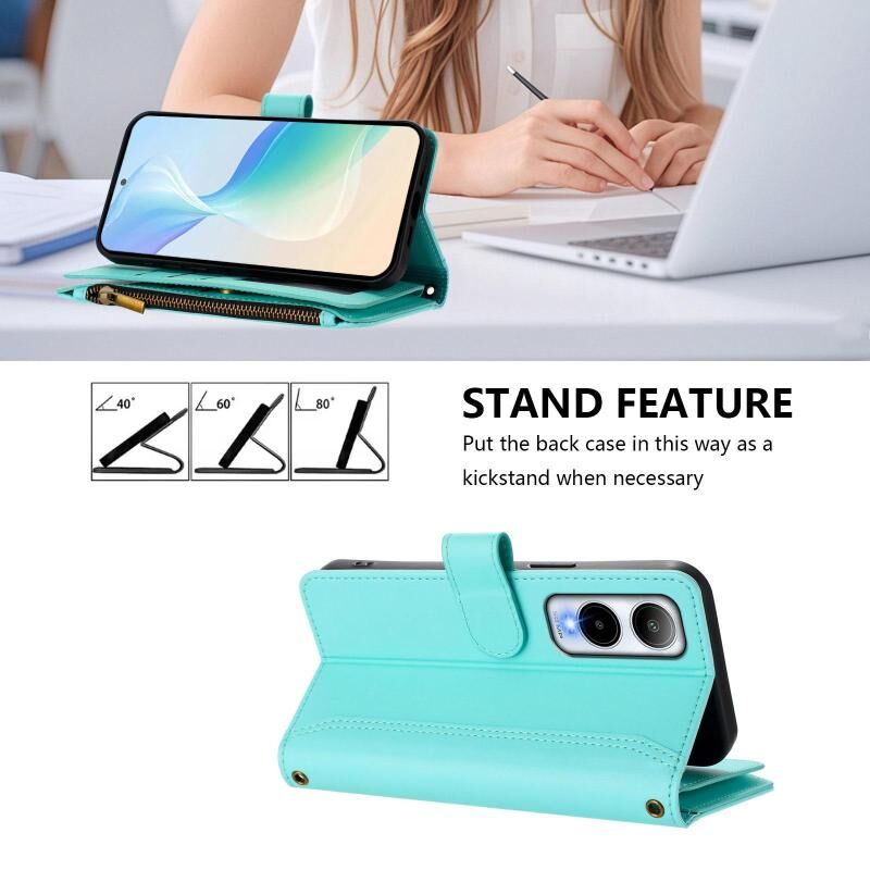 For Cricket Icon 6 Magnetic Closure 9 Card Slots Zipper Leather Case with Hand Strap(Mint Green)