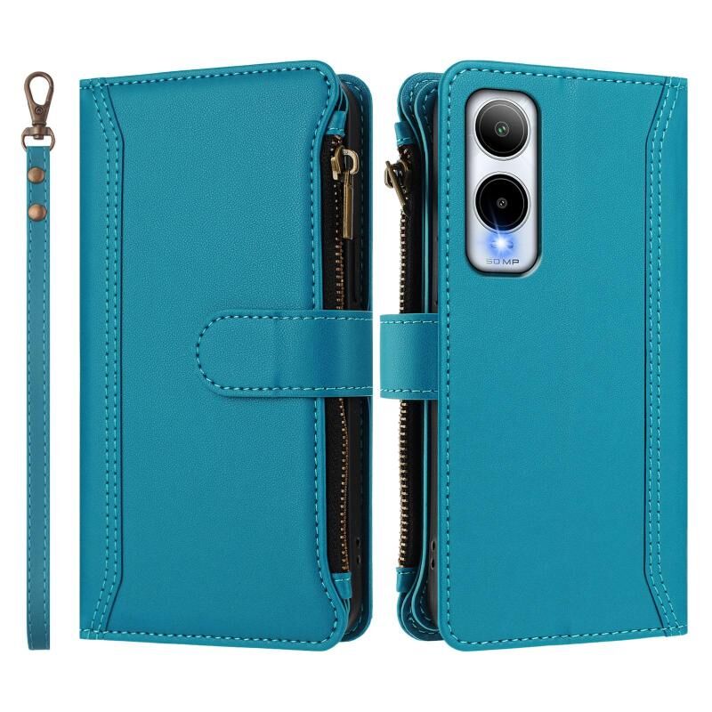 For Cricket Icon 6 Magnetic Closure 9 Card Slots Zipper Leather Case with Hand Strap(Turquoise)