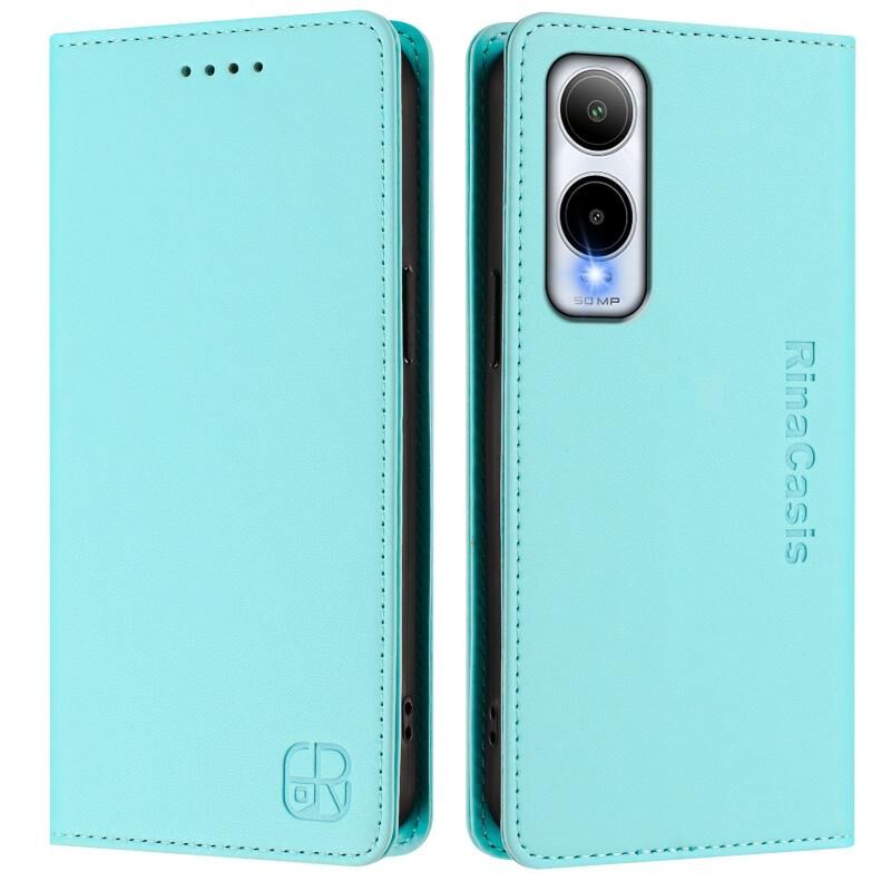 Θήκη τηλεφώνου από δέρμα με μαγνητική απορρόφηση και προστασία RFID για Cricket Icon 6 RC01, διπλού τύπου (Μέντας Πράσινο)