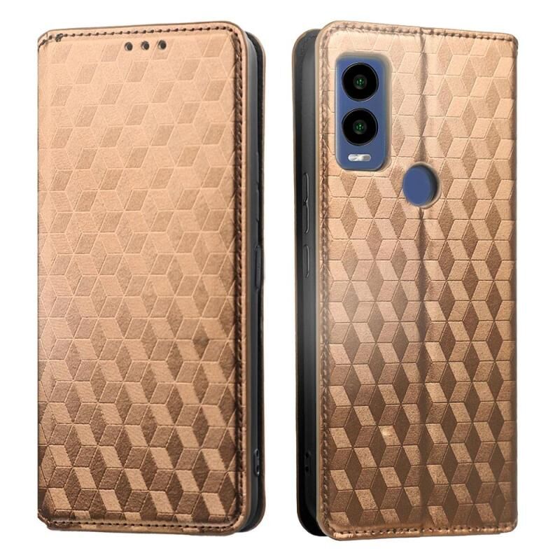 Θήκη τηλεφώνου Cricket Innovate E 5G 2022 με υφή κυβικού πλέγματος, δερμάτινη, αναδιπλούμενη (Μαύρο)