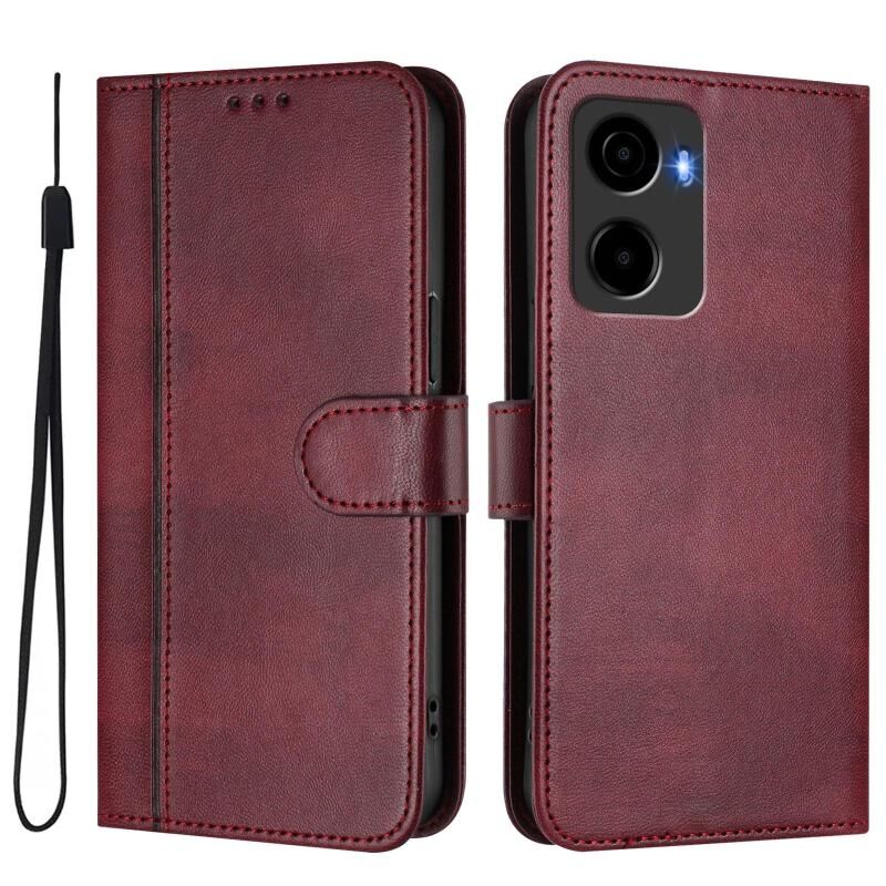 For Cricket Magic 2 5G / AT&T Propel 2 5G Line Splicing Buckle Retro Leather Phone Case(Wine Red)