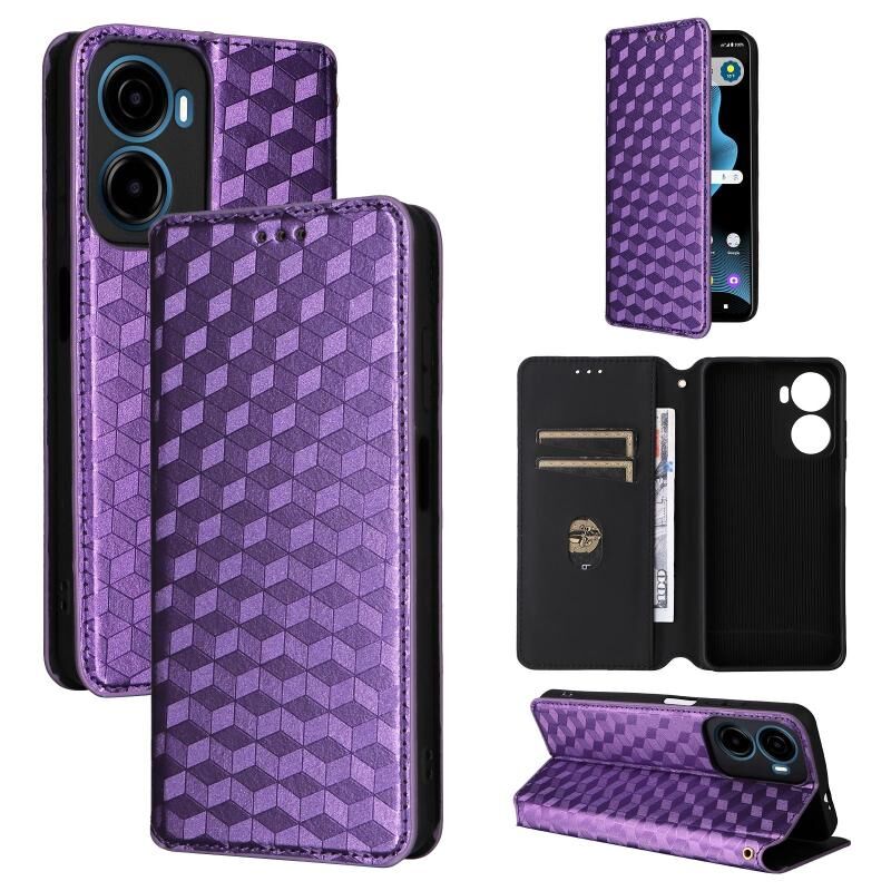 For Cricket Magic 2 5G Cubic Grid Texture Flip Leather Phone Case(Purple)