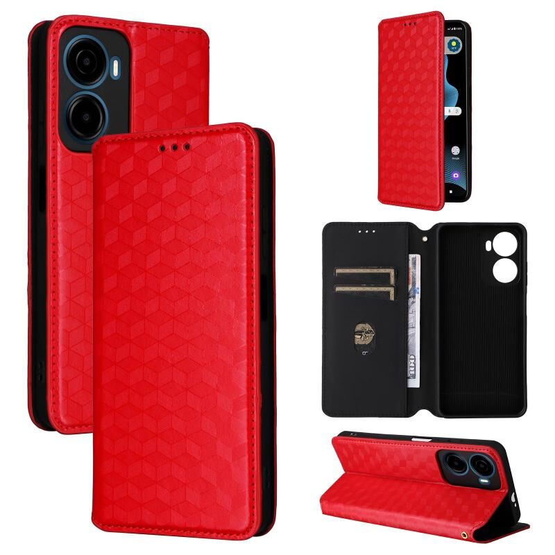 For Cricket Magic 2 5G Cubic Grid Texture Flip Leather Phone Case(Red)