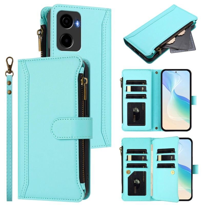 For Cricket Magic 2 5G Magnetic Closure 9 Card Slots Zipper Leather Case with Hand Strap(Mint Green)